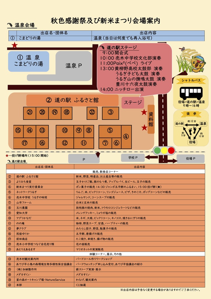 ※道の駅の駐車場は歩行者天国となります。小雨決行・雨天中止。